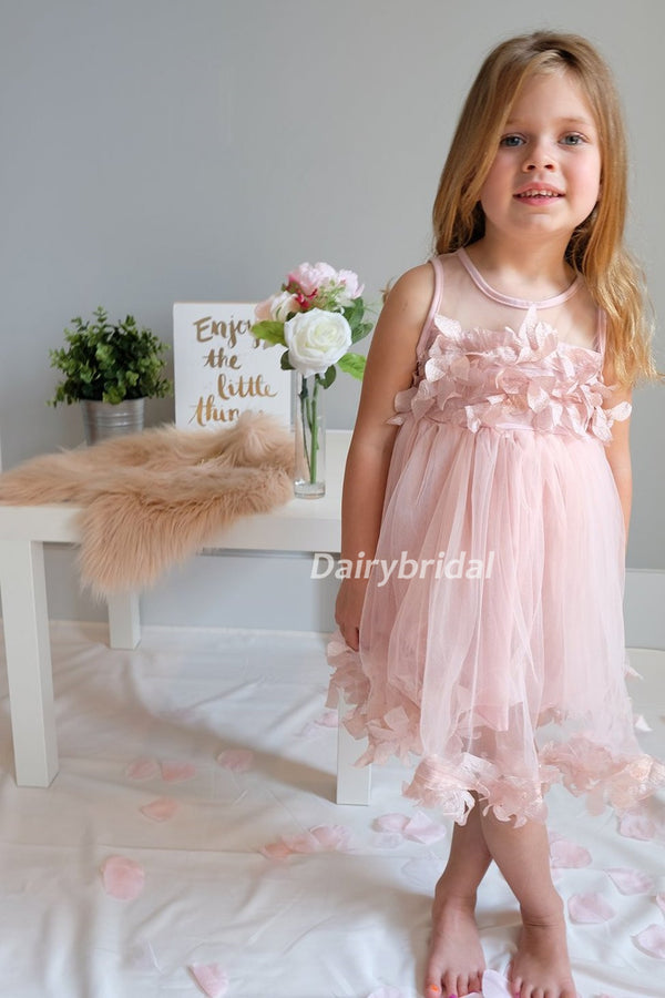 Pink Sleeveless Tulle Popular Tulle Flower Girl Dresses, Cheap Little Girl Dresses, DA904